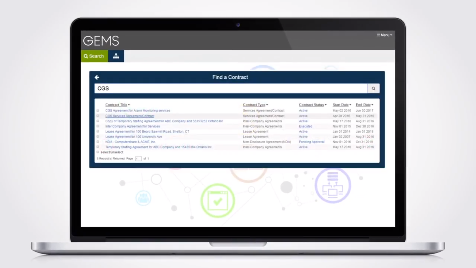 Our global entity management system (GEMS) provides you with a centralized contract database where you can generate and sign agreements, store essential contract data, and include the data in custom and ad hoc reports.